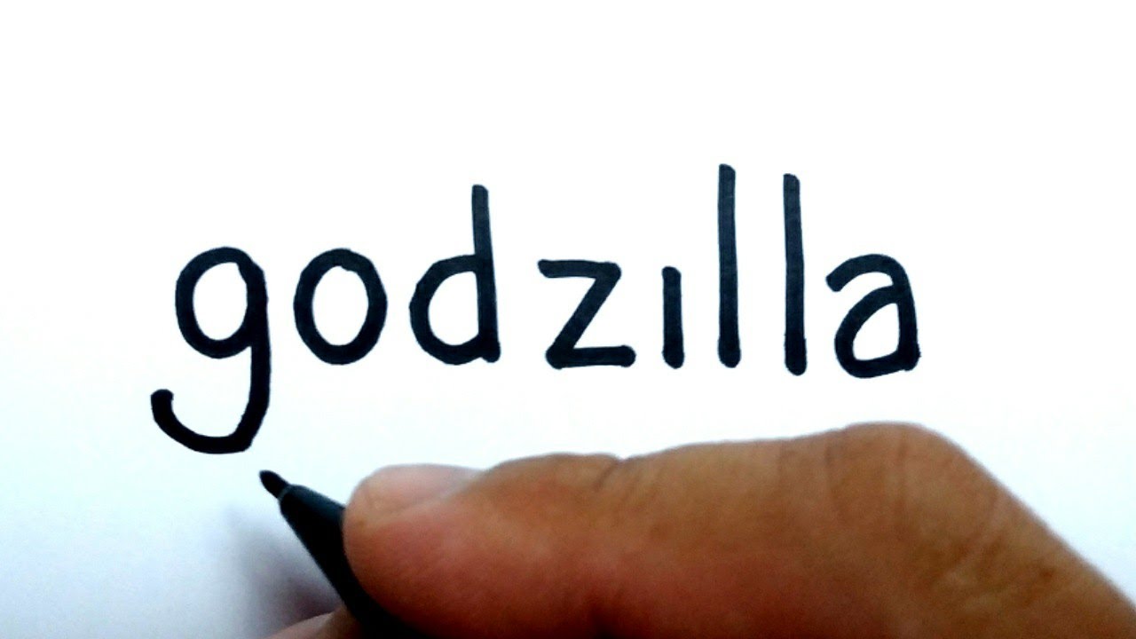 KEREN, cara menggambar kata GODZILLA menjadi gambar raja monster godzilla - YouTube