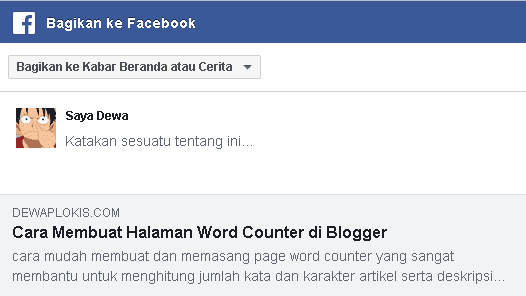Menampilkan Gambar dan Deskripsi Share Facebook Untuk Blogger - Dewa Plokis Blog