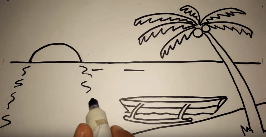 Cara menggambar Pemandangan sunset di pantai | Drawing sunset Scenery | Drawing beach - YouTub… | Art drawings for kids, Beach art drawing, Illustration art drawing