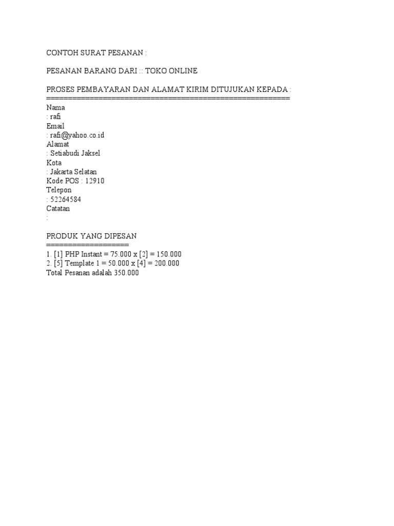 Contoh Surat Order Pengiriman | Zona ilmu 6