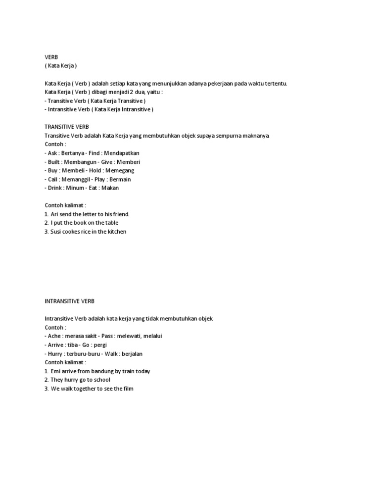 Penjelasan Kalimat Transitive dan Intransitive Verb dan Contohnya. - DUNIA PENDIDIKAN