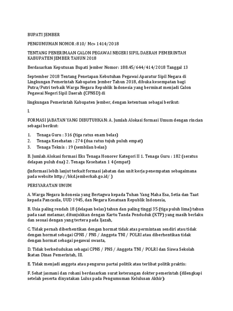 Pengumuman Hasil Seleksi Administrasi CPNS KABUPATEN JEMBER JATIM 2018 Verifikasi Berkas Asli - Tipssehatcantik.com