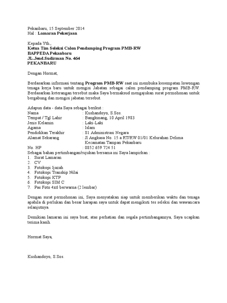 Contoh Surat Lamaran Kerja - Posts | Facebook