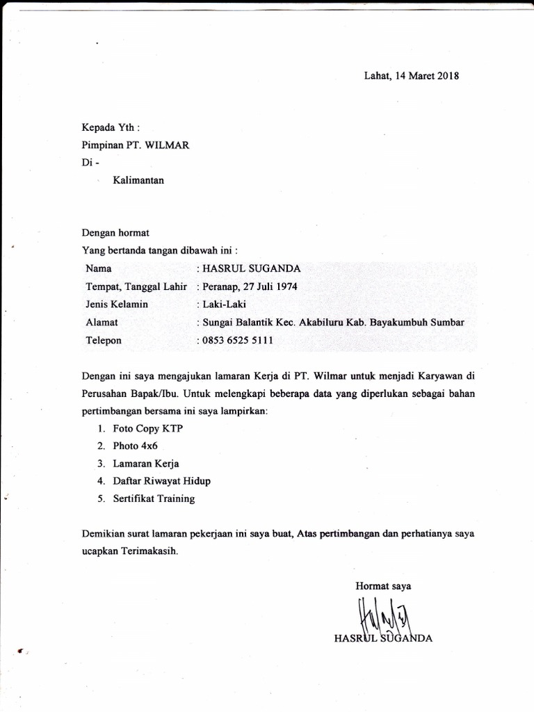 Contoh Surat Lamaran Kerja Di Pt Kelapa Sawit – Backup Gambar