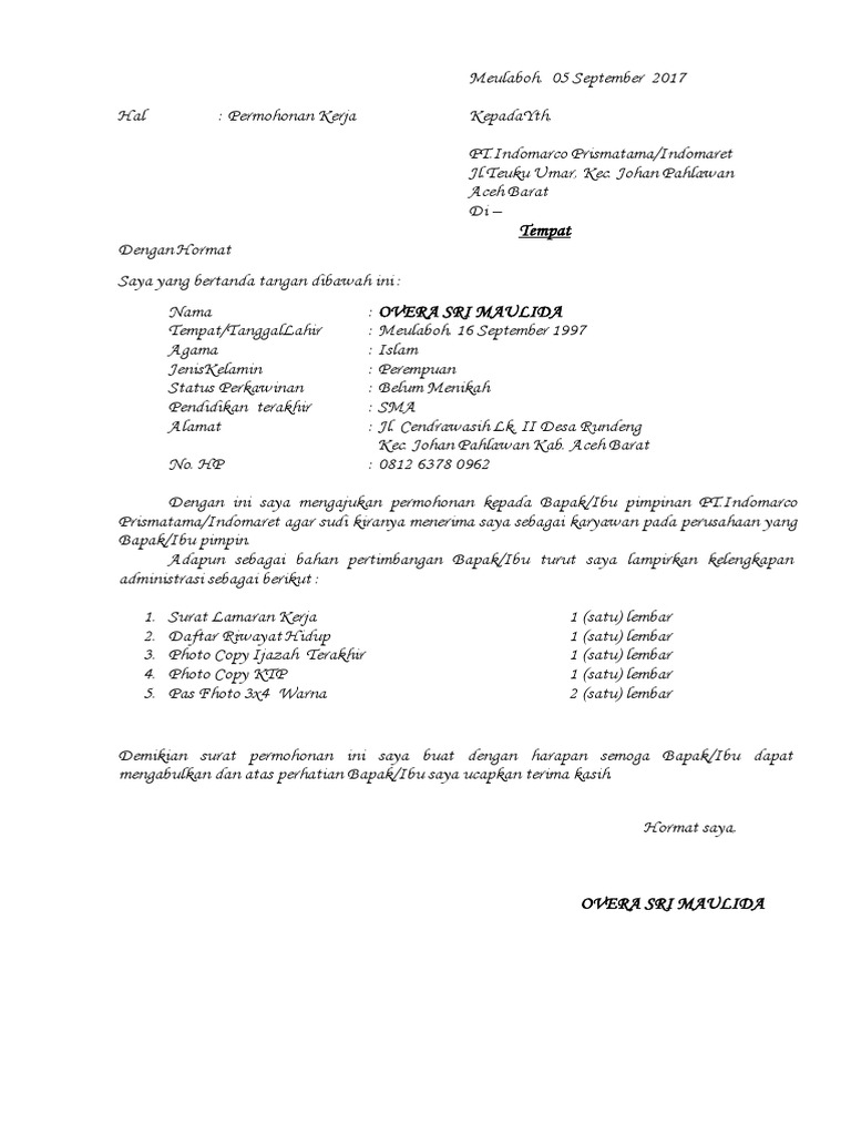 Contoh Surat Lamaran Kerja Indomaret - Nekopencil
