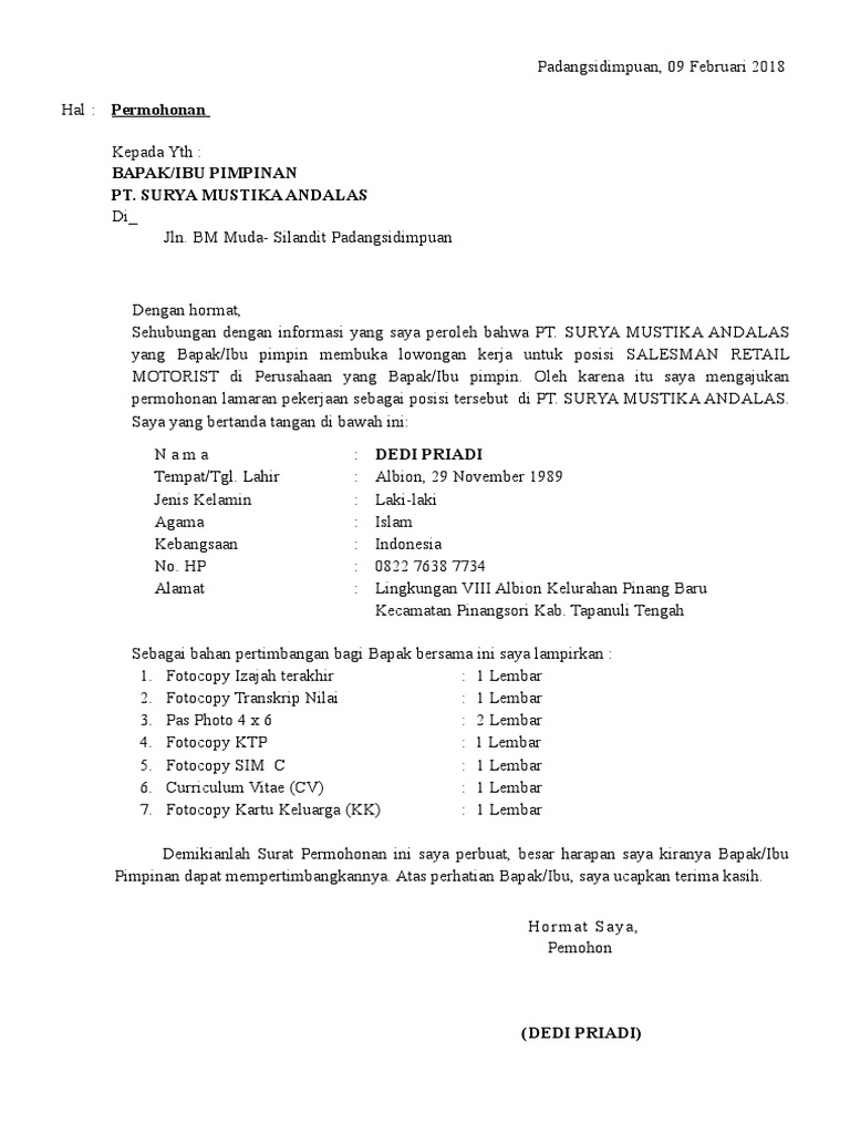 Download Contoh Surat Lamaran Pekerjaan | Pimpinan, Surat, Tanggal