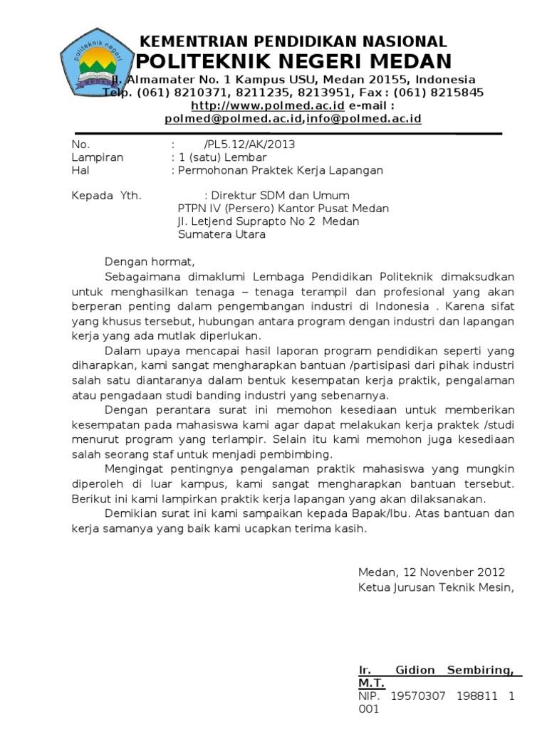 Surat Pkl Polmed T.mesin Ke Ptpn Iv [dvlr1x725z4z]