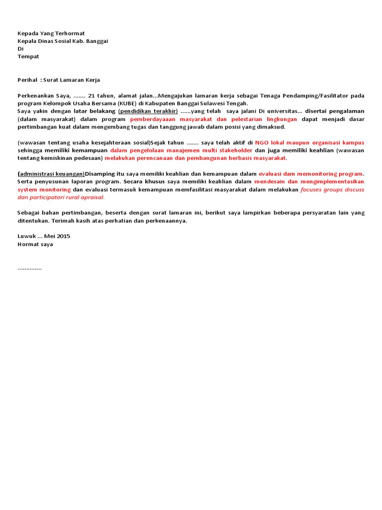 contoh surat lamaran kerja ke dinas sosial - Gawe CV