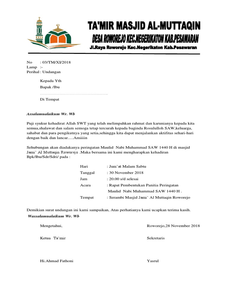 Contoh Surat Undangan Rapat Pembentukan Panitia Maulid - Bagikan Contoh