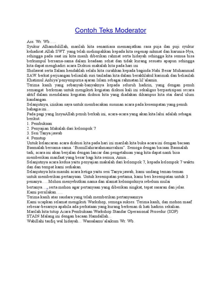 Contoh Teks Moderator