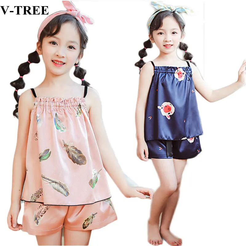 Sutra Piyama Anak Set Musim Panas Anak Piyama untuk Anak Perempuan 2019 Gambar Kartun Gadis Baju Tidur Remaja Pakaian Dalam Pakaian|Set Pajama| - AliExpress