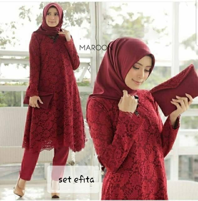 Vs ST EFITA MARON l atasan fashion baju brukat blouse brujat celana panjang setelan kebaya setelan baju kondangan wanita, Olshop Fashion, Olshop Wanita di Carousell
