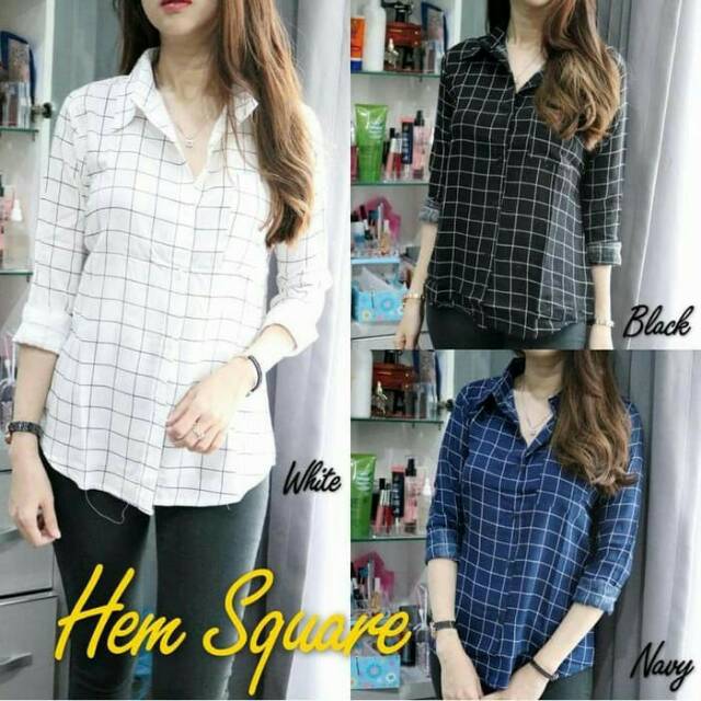 Kemeja Square BC/ Pakaian wanita baju kemeja cewek kemeja wanita kotak atasan kemeja perempuan | Shopee Indonesia