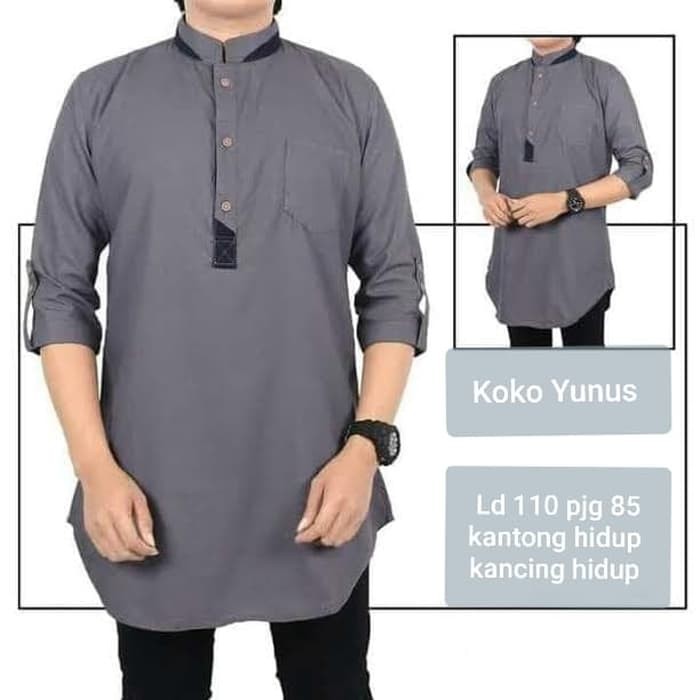 H96H2 Koko Terbaru Baju Muslim Pria Baju Koko Lengan Pendek Nablus [Koko Yunus Grey Sc] Baju | Shopee Indonesia