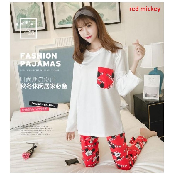 Jual PJ001-redmickey Baju Tidur Wanita Cantik Set Baju + Celana Lucu Import - GrosirImpor.com