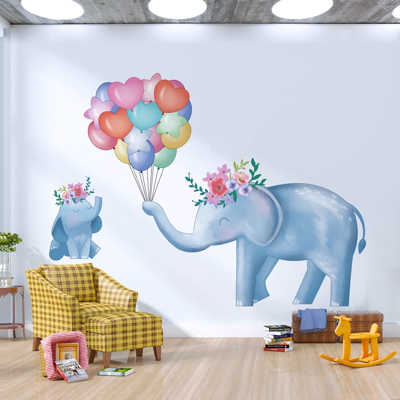 stiker dinding dengan bahan mudah dilepas dan gambar kartun gajah untuk dekorasi kamar anak | Shopee Indonesia