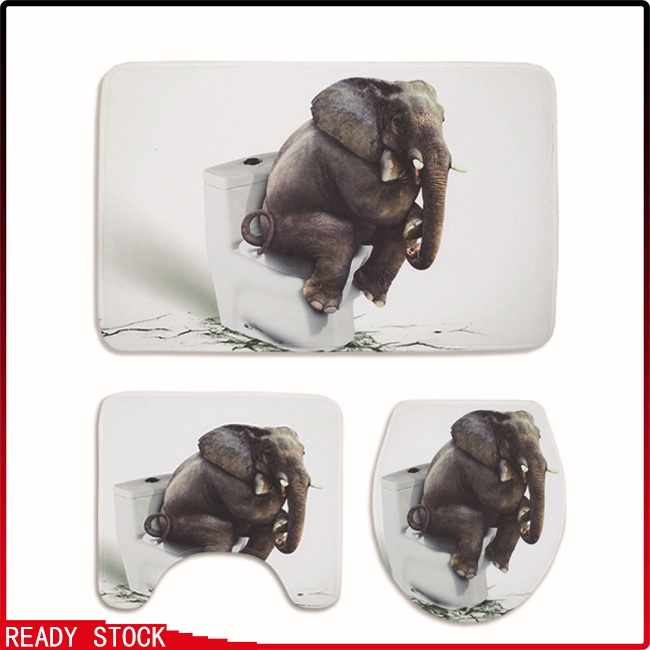3Pcs / Set Karpet Alas Lantai dengan Bahan Anti-Slip dan Gambar Gajah 3D untuk Kamar Mandi | Shopee Indonesia