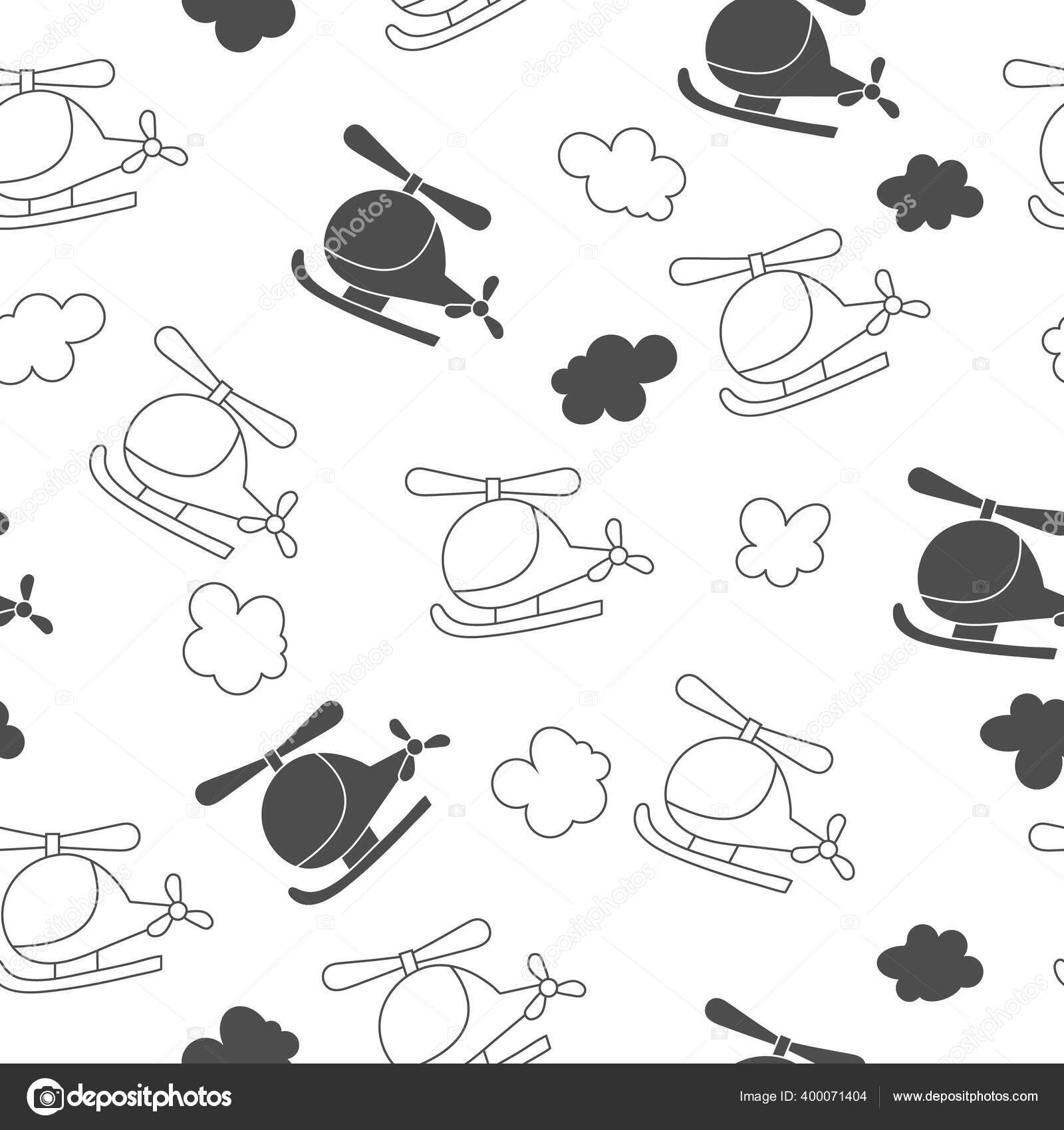 Pola Vektor Mulus Dengan Helikopter Kartun Dan Awan Untuk Tekstur — Stok Vektor © Grommik #400071404