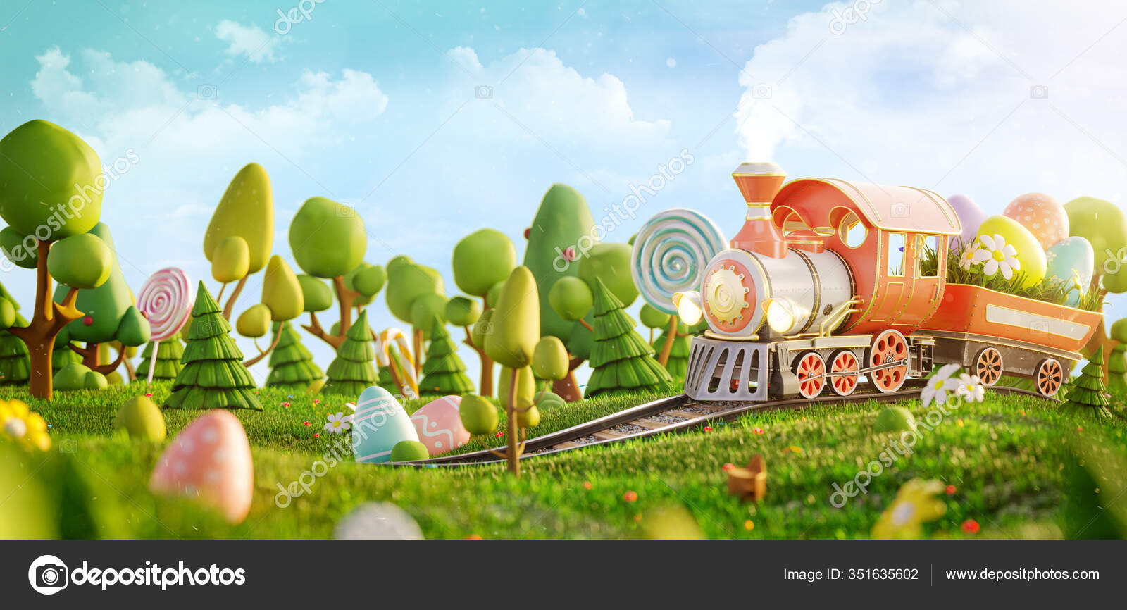 Menakjubkan Peri Paskah Kereta Hutan Ajaib Gambar Kartu Pos Paskah — Stok Foto © Vadmary #351635602
