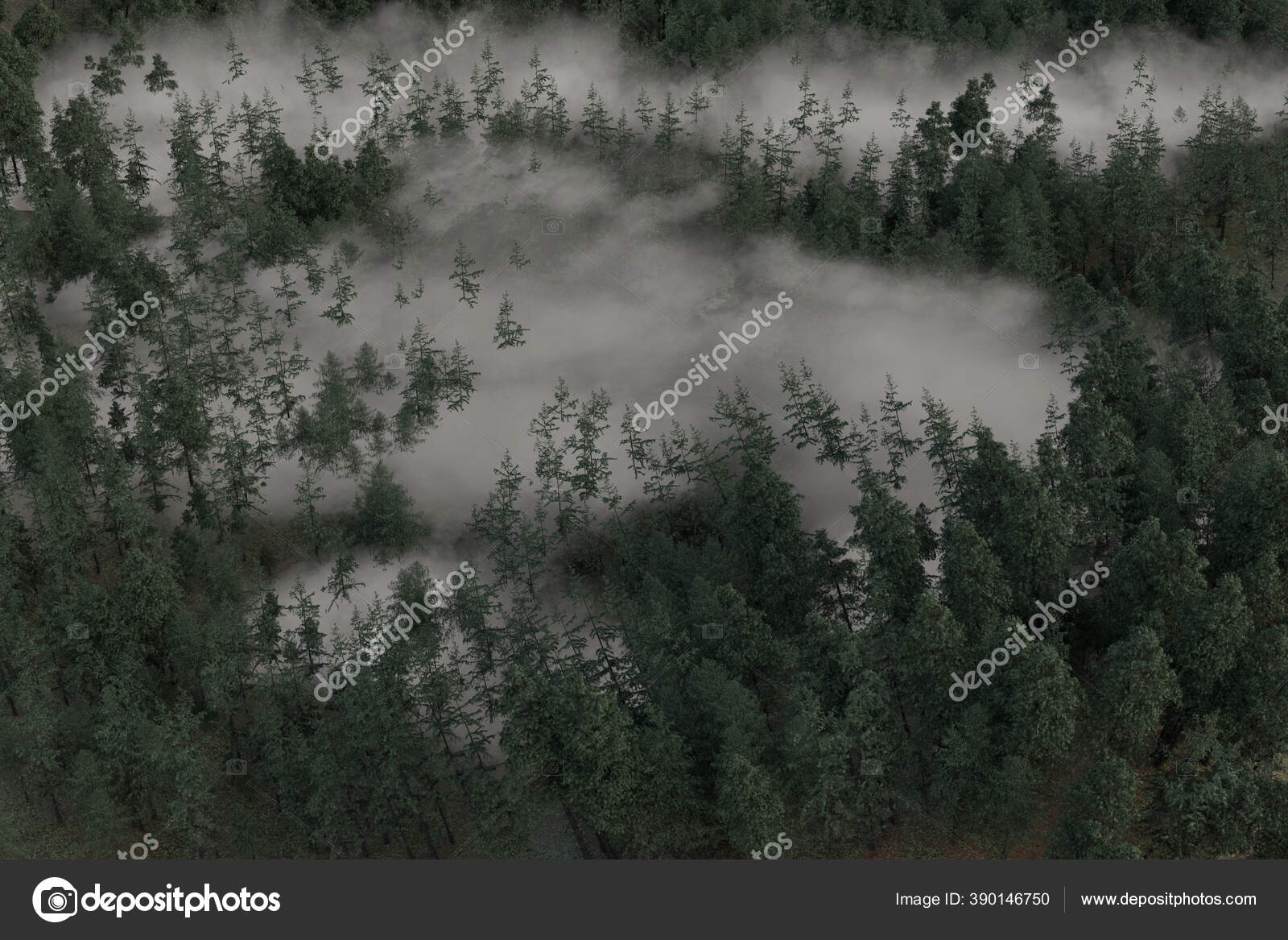 Rendering Hutan Berkabut Dalam Pandangan Udara — Stok Foto © BrillianceEye #390146750