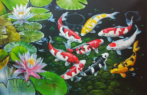 jual Lukisan painting repro Koi Ikan Hoki Feng Shui ready di Lapak Justin Mellow | Bukalapak