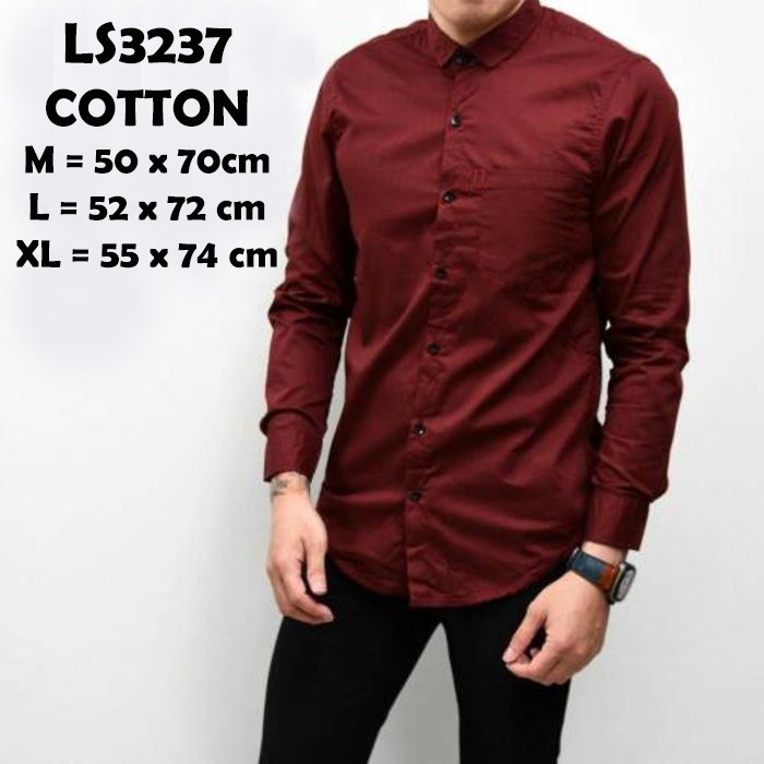 Kemeja Pria Lengan Panjang Pria Merah Maroon Polos Cowok Keren Casual Slimfit 3237 | Shopee Indonesia