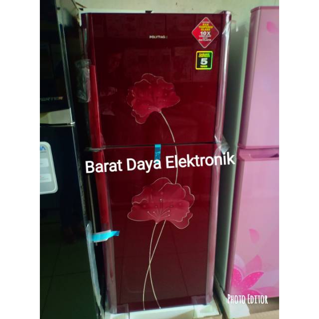 KULKAS POLYTRON 180 LITER BELLEZA 2 1 PINTU HITAM BUNGA KEMBANG MERAH LOW WATT 18 HOR di Lapak BEKASI ELECTROMART | Bukalapak