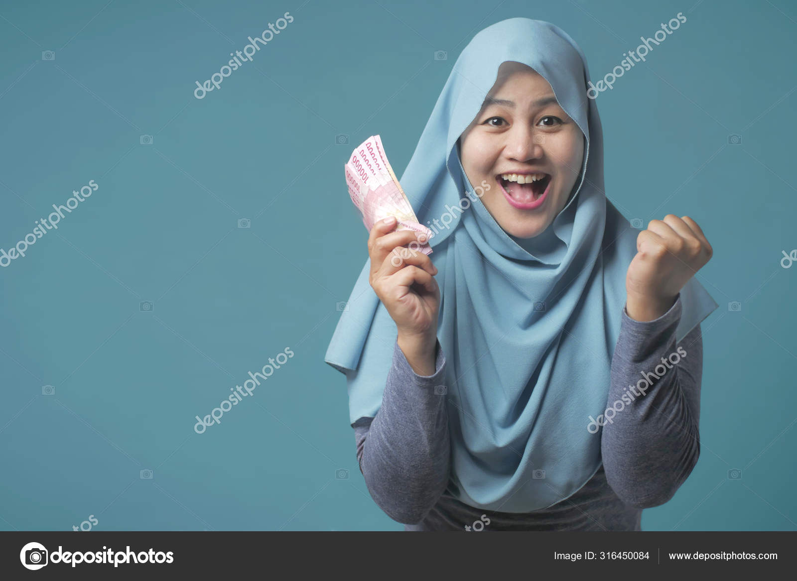 Perempuan Muslim Indonesia Memegang Uang Rupiah — Stok Foto © airdone #316450084