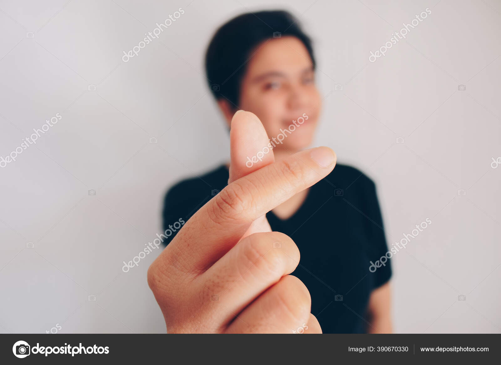 Gadis Cantik Asia Tersenyum Dengan Rambut Pendek Dan Menunjukkan Tanda — Stok Foto © Reezky11 #390670330