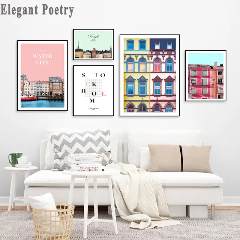 Scandinavian Poster Nordic Arsitektur Rumah Dinding Art Lukisan Dekoratif Gambar Modern Dekorasi Ruang Tamu| | - AliExpress