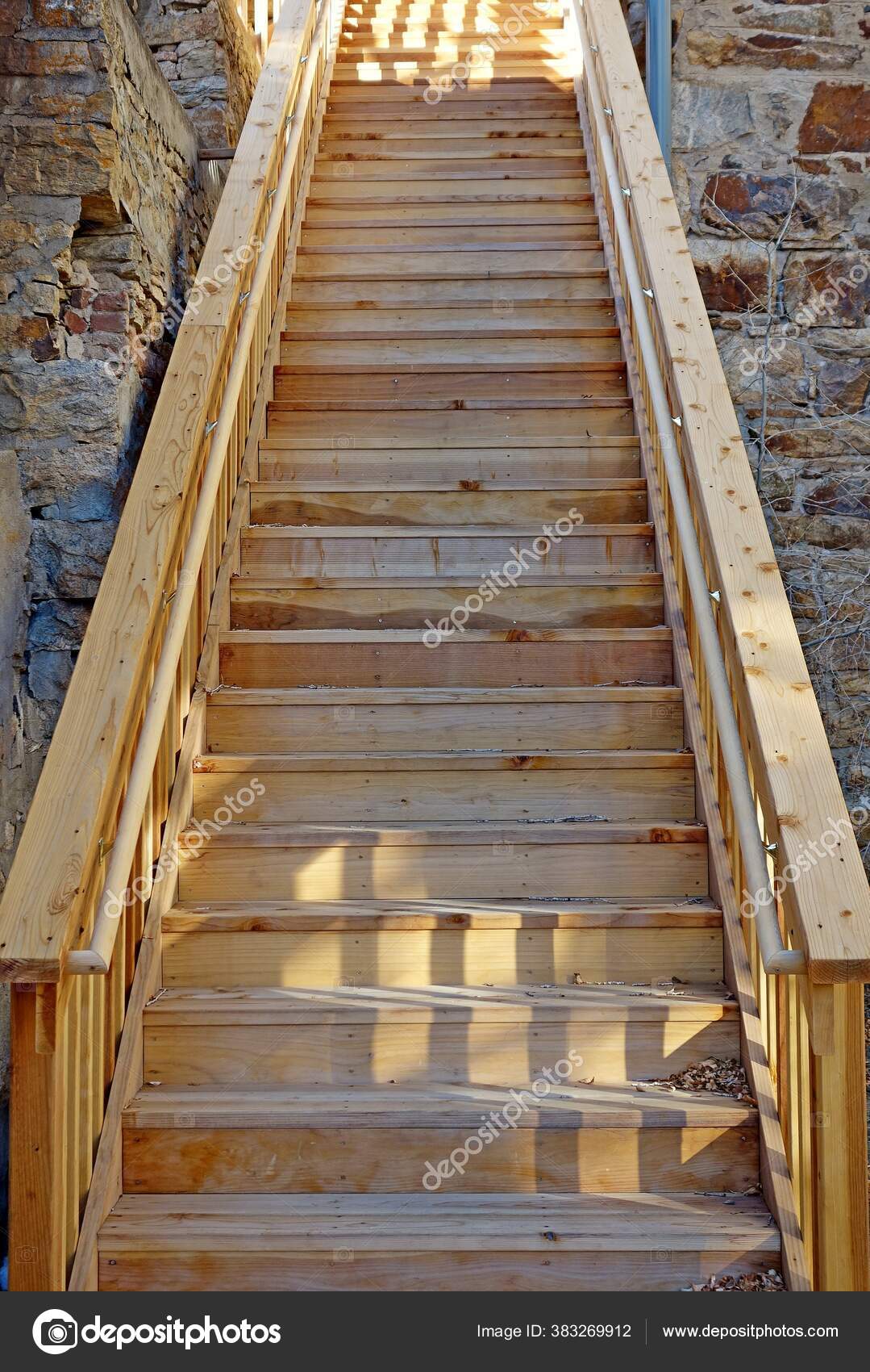 Sebuah Tembakan Vertikal Dari Tangga Kayu Baru — Stok Foto © Wirestock #383269912