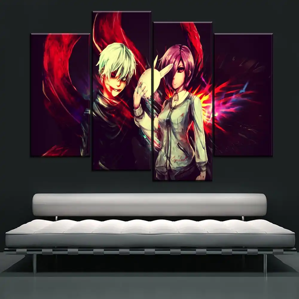 Kanvas Seni Cetak Dinding Modular Foto Panel Ken Kaneki dan Touka Kirishima Lukisan Tokyo Ghoul Anime Poster Dekorasi Rumah| | - AliExpress