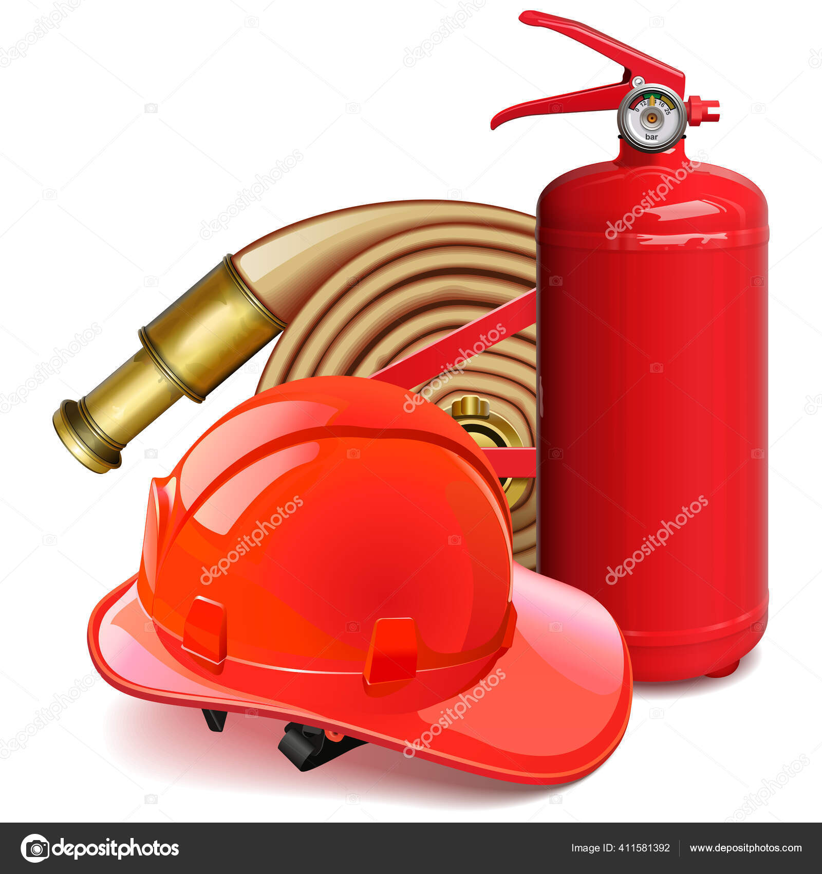 Konsep Pemadam Kebakaran Vektor Dengan Helm Merah Terisolasi Pada Latar — Stok Vektor © dashadima #411581392