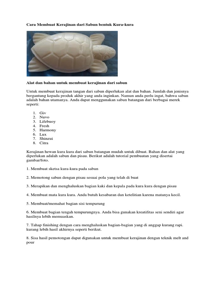 Cara Membuat Kerajinan dari Sabun bentuk Kura