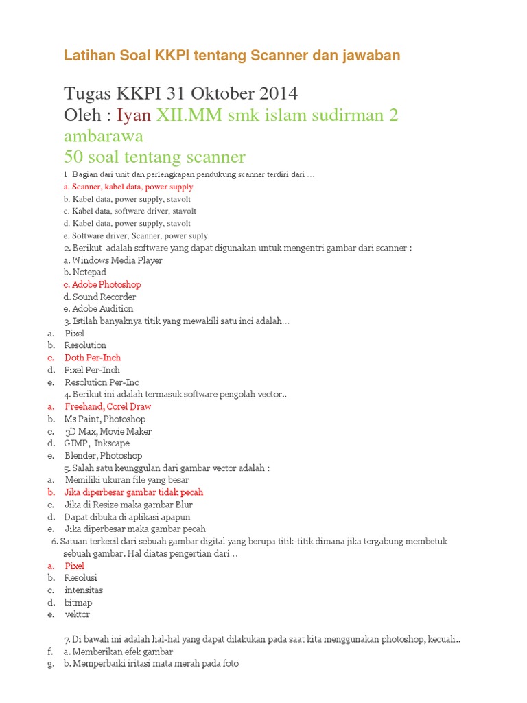 Latihan Soal KKPI Tentang Scanner Dan Jawaban