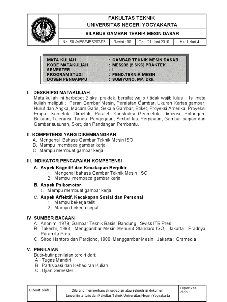 SILABUS GAMBAR TEKNIK MESIN Edukasi Pembelajaran