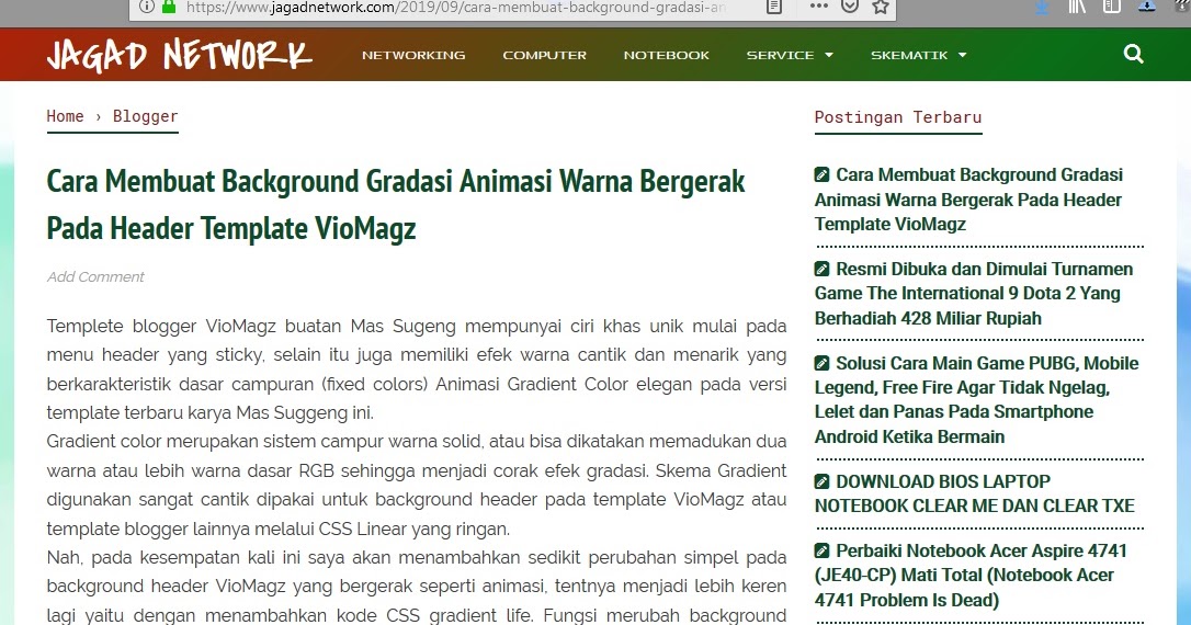 Cara Membuat Background Gradasi Animasi Warna Bergerak Pada Header Template VioMagz - Jagad Network