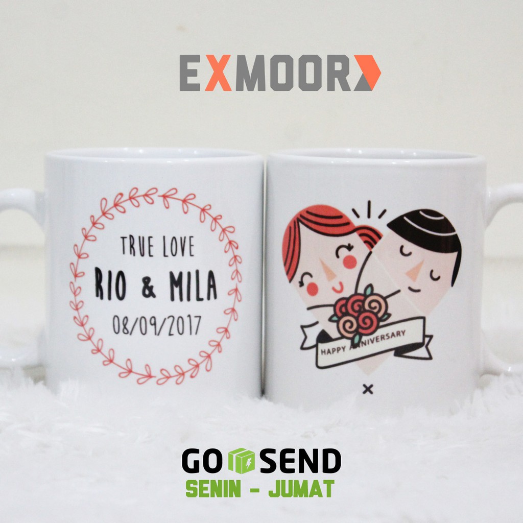 Kado Anniversary Mug Couple Cute Doodle & Wreath Floral | Shopee Indonesia