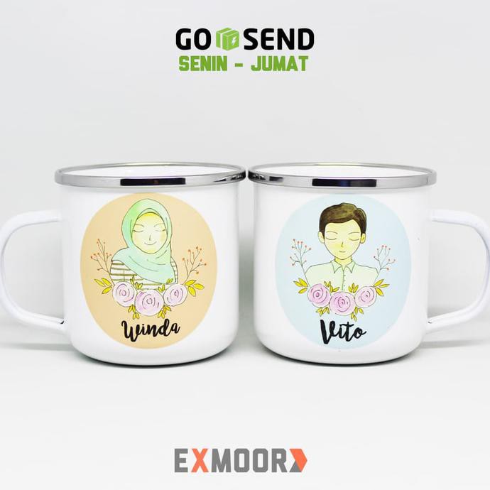 New Cangkir Enamel Couple Doodle Hijab Untuk Kado Pernikahan di Lapak Dian Marry Satuti | Bukalapak
