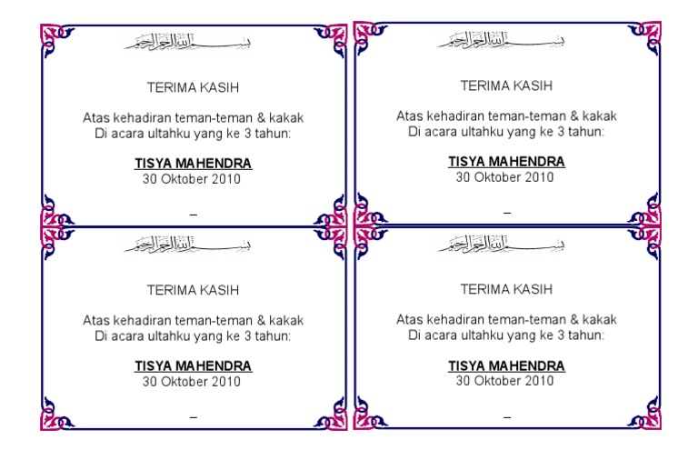 Contoh Kartu Ucapan Aqiqah Berwarna Versi Ms Word di 2020 | Undangan, Bersyukur, Kata-kata indah