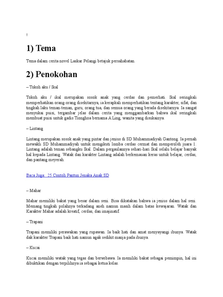 1) Tema 2) Penokohan: Baca Juga: 25 Contoh Pantun Jenaka Anak SD