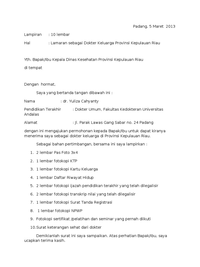 Contoh Surat Lamaran Kerja Bidan Untuk Dinas Kesehatan - ID Lowker