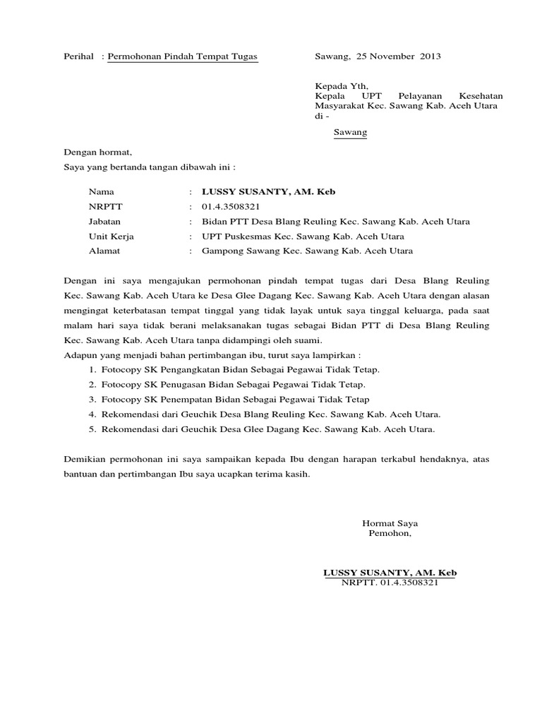 01. Permohonan Pindah Tempat Tugas Bidan PTT LUSSY