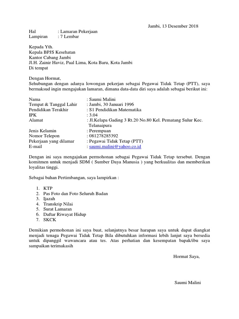 Contoh Surat Lamaran Kerja Bpjs Kesehatan Ptt - Kumpulan Surat Penting