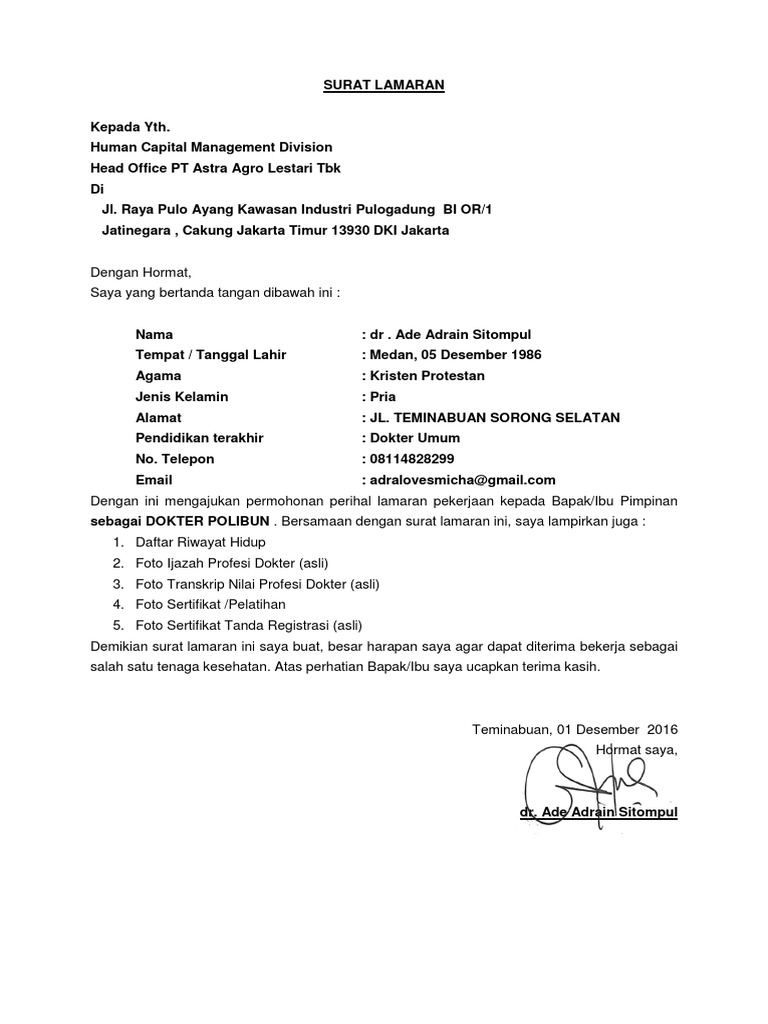 Surat Lamaran Pt Astra Agro Lestari Tbk