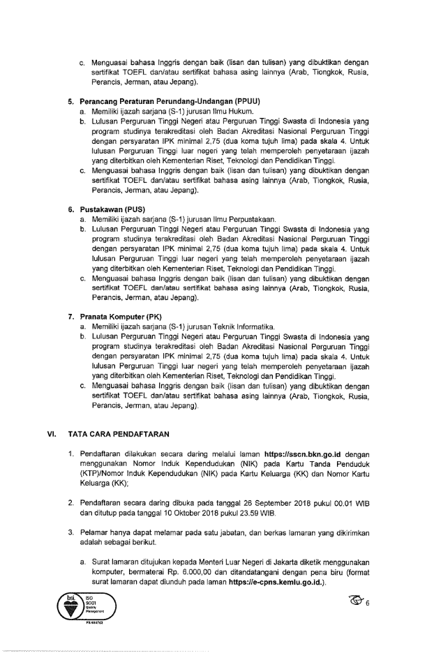 Rekrutmen CPNS Kementerian Luar Negeri Tahun 2018 [125 Formasi] - REKRUTMEN LOWONGAN KERJA BULAN OKTOBER 2020