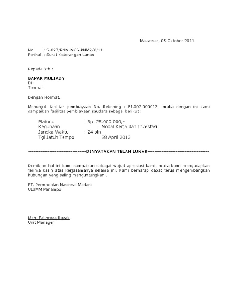 surat lunas