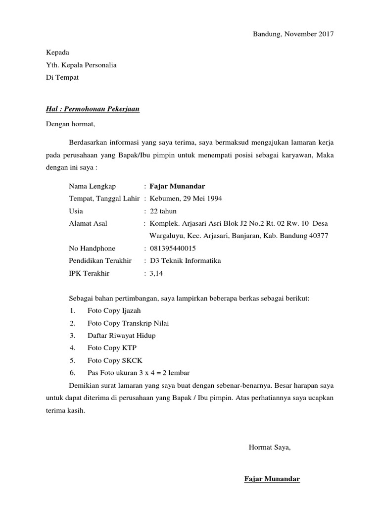 Hal: Permohonan Pekerjaan: Fajar Munandar