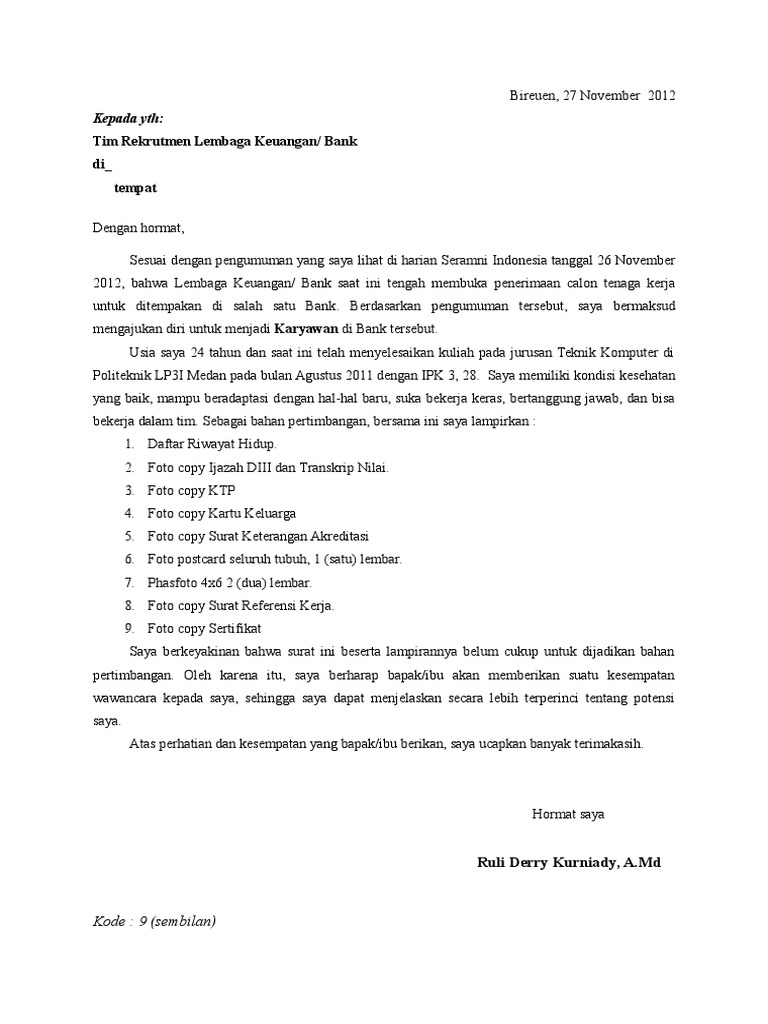 DOC) Surat lamaran kerja bri | Awal Pallawa - Academia.edu