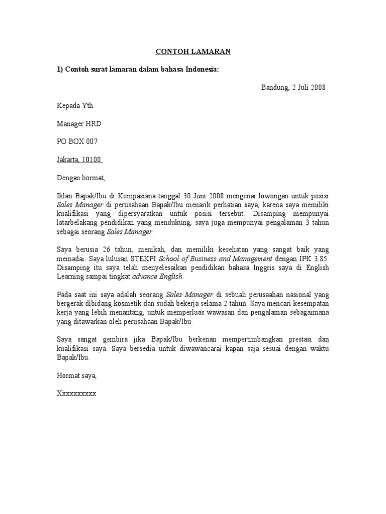 Contoh Surat Lamaran Kerja Marketing Dalam Bahasa Inggris Dan Indonesia